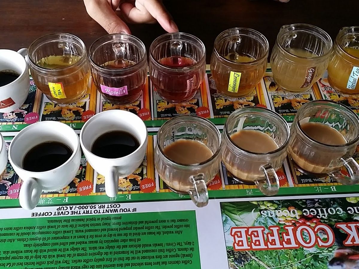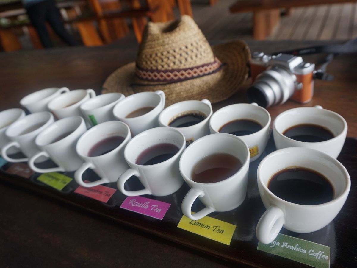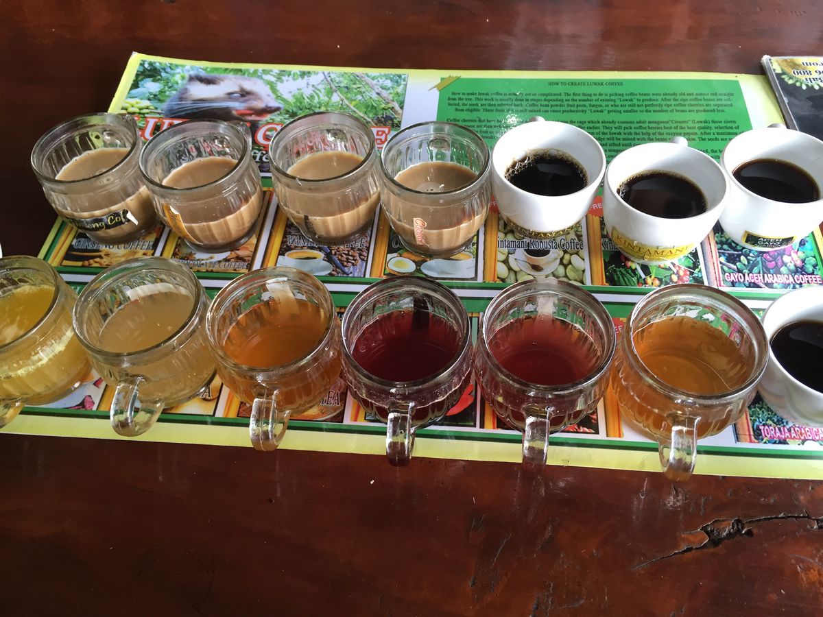 食後はコーヒーショップで、いろんなコーヒーの試飲と、高級ジャコウネココーヒーを。コーヒー好きの相方は非常に満足していました。お土産も種類が豊富で、小さいパックのものもありばらまきには便利かと思います。
