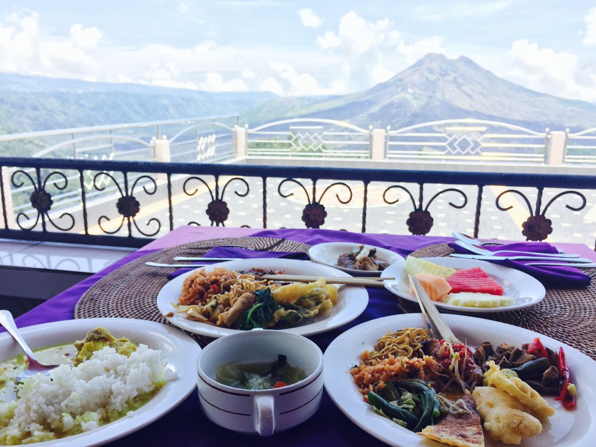 キンタマーニ高原を見下ろすテラスでのビュッフェはツアー代には含まれていませんが安くて美味しかったです。なによりテラスからの絶景と風が心地よい。
