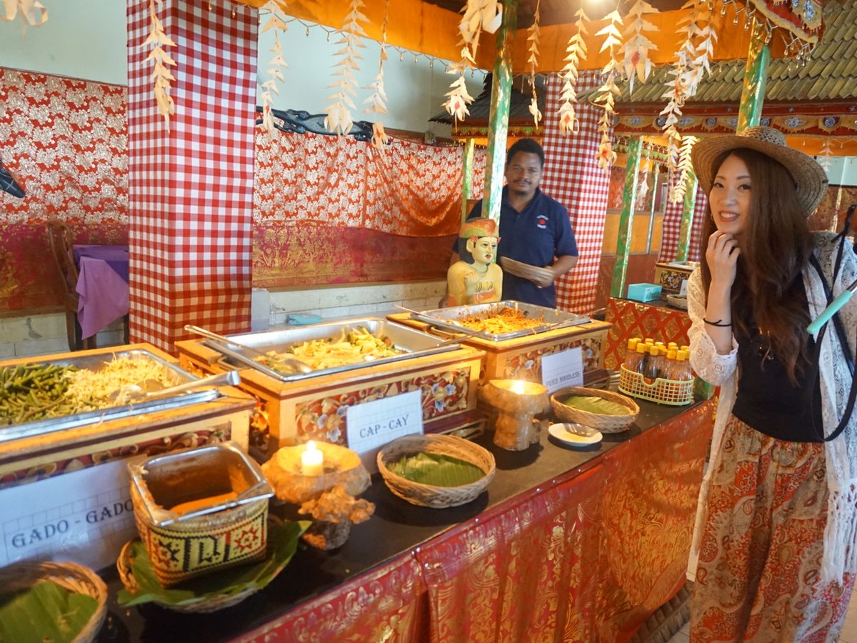 その後はお願いしていたケチャダンスの鑑賞し、バリ舞踊を観ながらバリ料理が食べられるガイドさんオススメのLagongというお店へ行きました。インドネシア料理とはまた違ったお料理で日本人にも食べやすかったです。