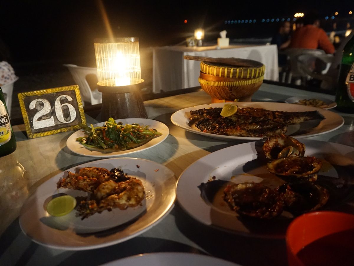 最後ホテルへ向かう途中のシーフードレストランへ。こちらでは市場の様なところで魚等を選び、その場で焼いてもらいます。ビーチサイドでそれを食べ、雰囲気最高。ただ味付けは少しスパイシーなソース?焼きでちょっと残念。海鮮の味がなんとももったいなく、普通に塩焼きで食べたい〜なんて思ってしまいました(笑)。