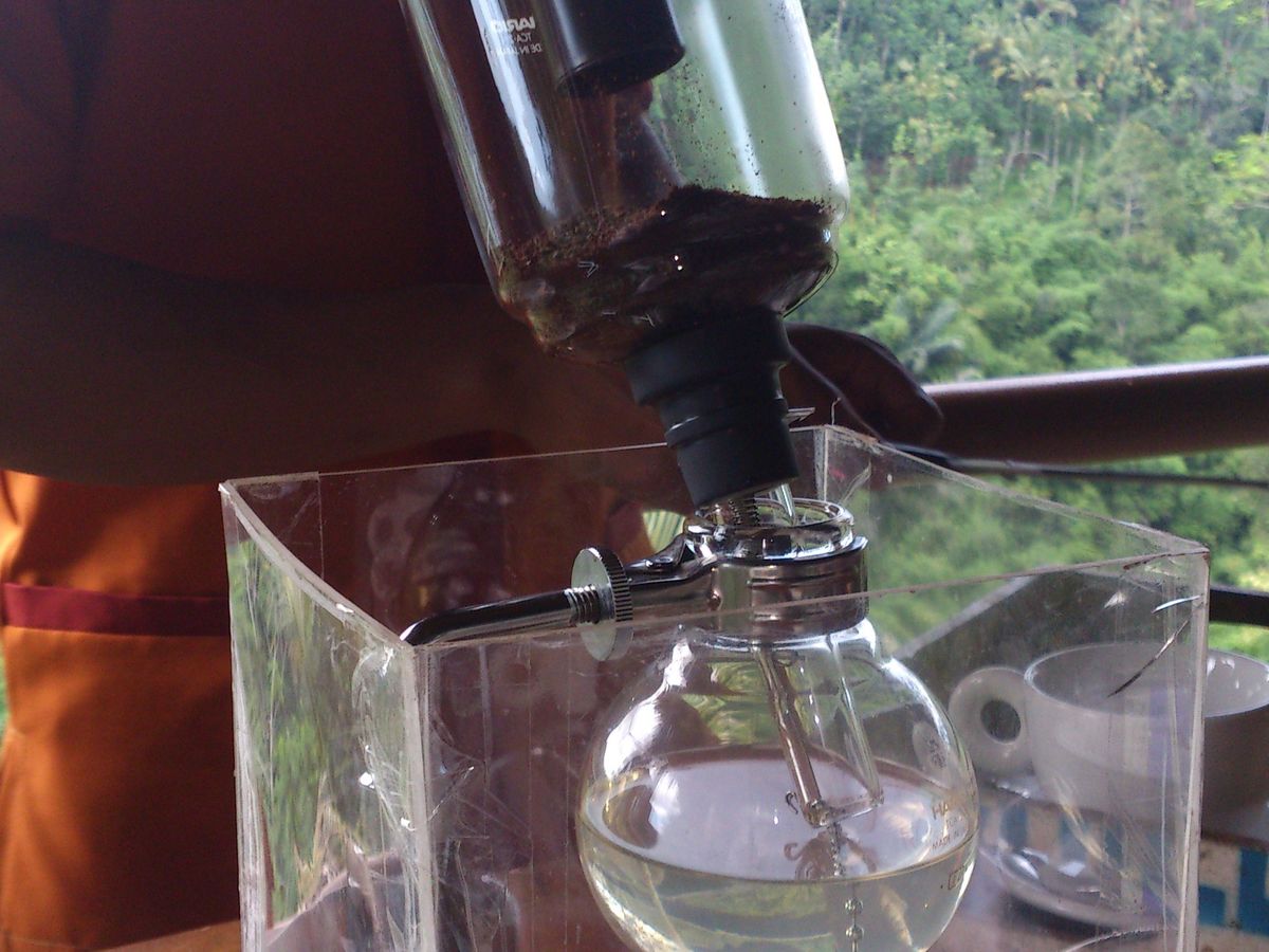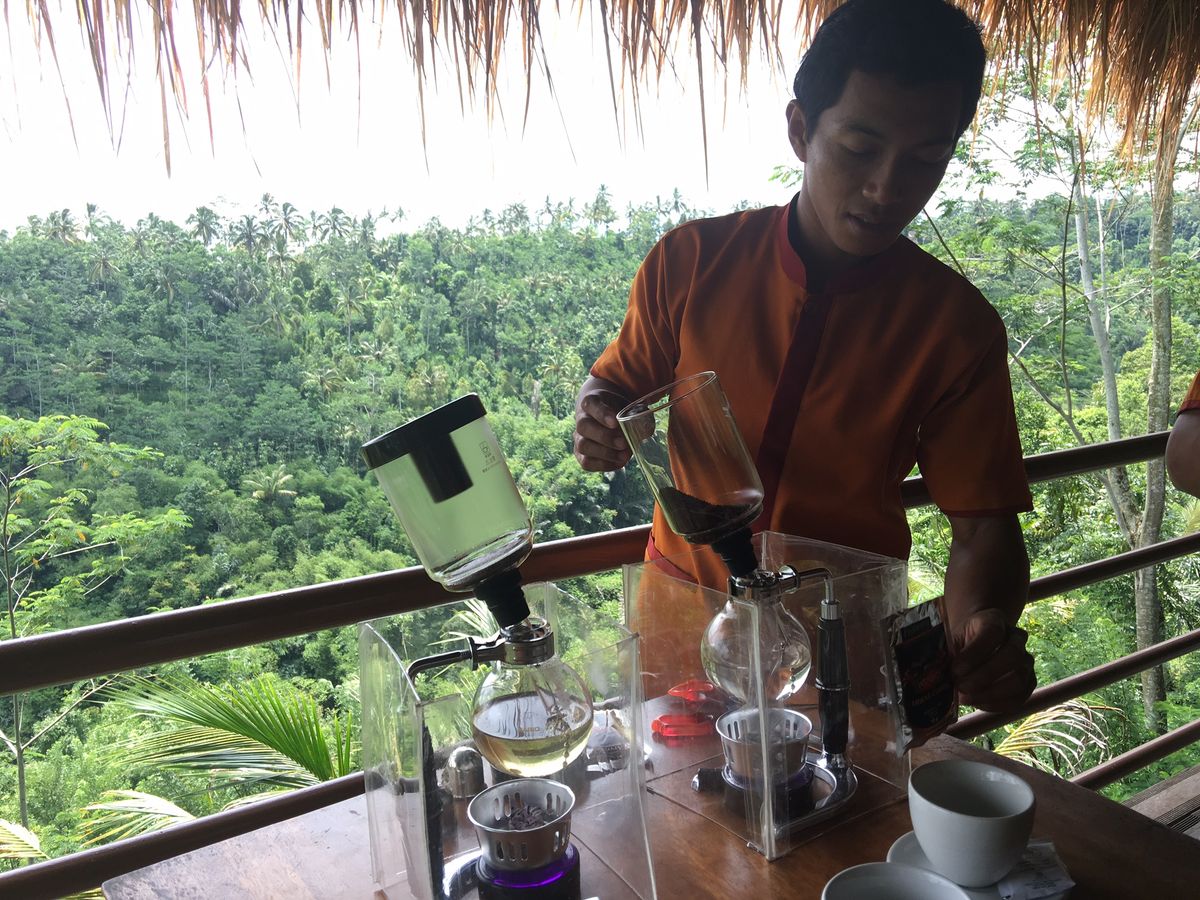 ここでは農園で作られたバラエティに富んだコーヒー・紅茶の無料サンプルをテイスティングできます。バリの名産、ジャコウネコのコーヒー「コピ・ルワク」は別料金(USD5)ですが、是非ケチらずに堪能してください。丁寧にサイフォンで淹れたコーヒーを絶景のウブドのカフェでいただけるのは、バリならではの体験です。
