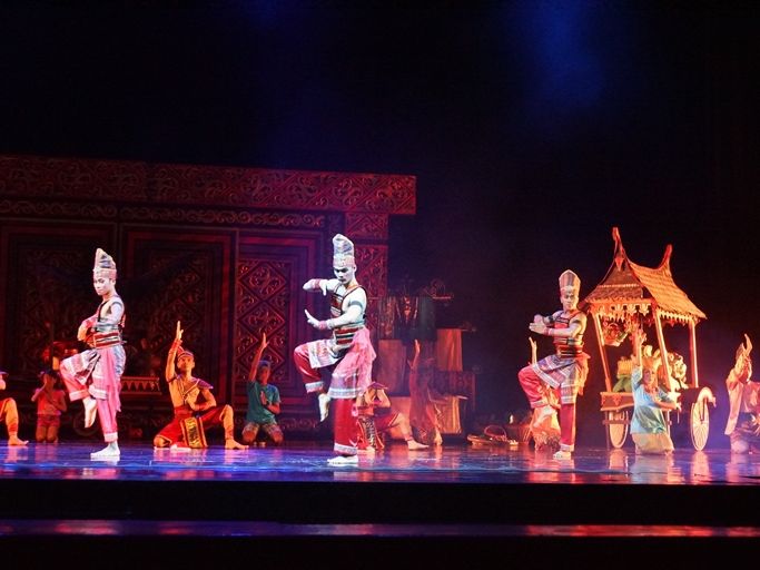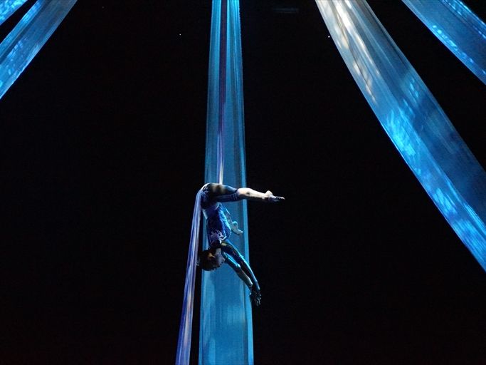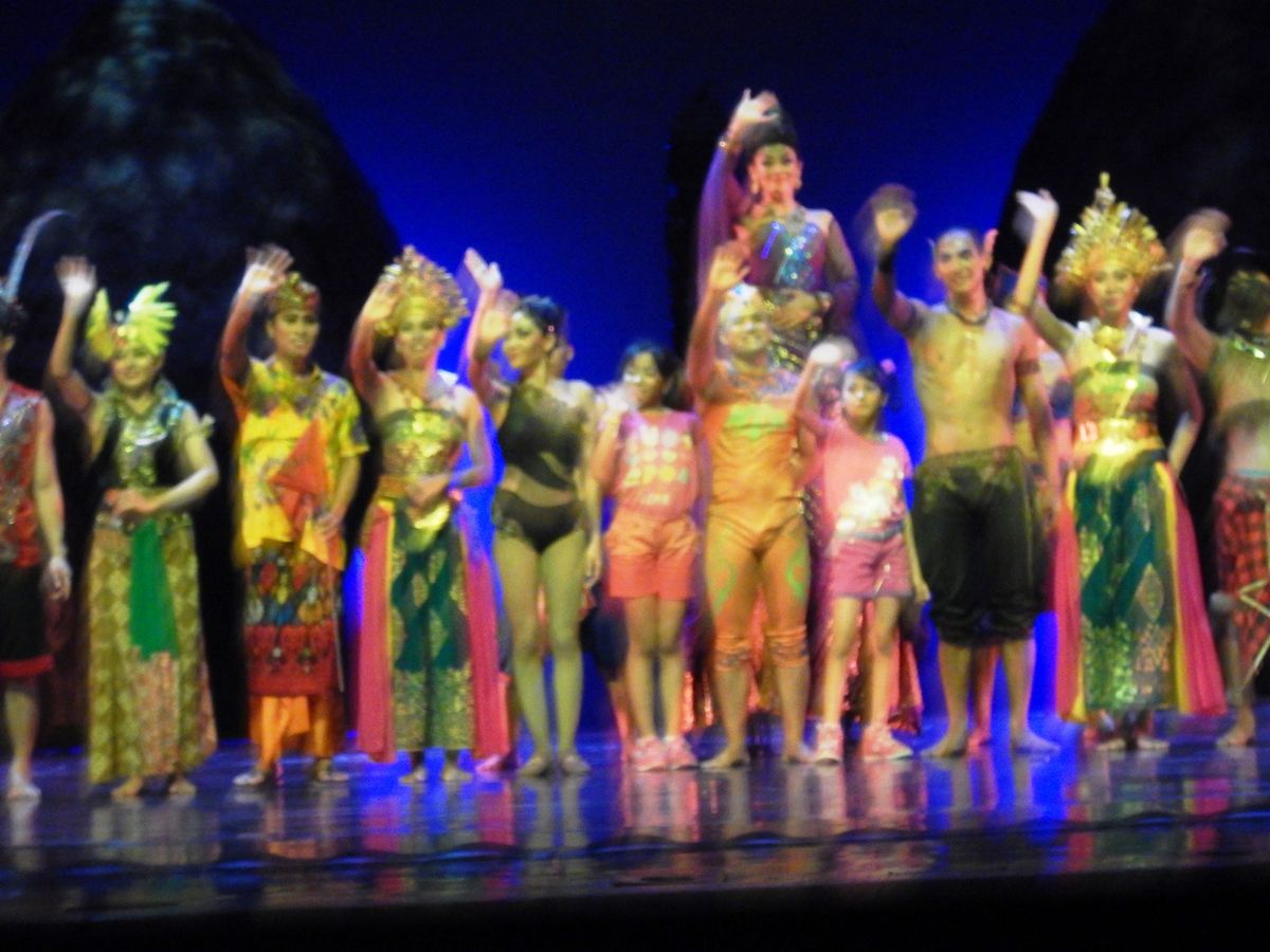 バリの伝統的な舞踊を始めとして、各地の伝統舞踊や伝説をアレンジしたダンスも興味深く、またACROBATIC FLAG DANCE(リボンを使ったカップルダンス)は、美しい音楽にのって流れるように、またリボンを使った空中遊泳はこれでもかとハラハラするシーンの連続で大変素晴らしかったです。