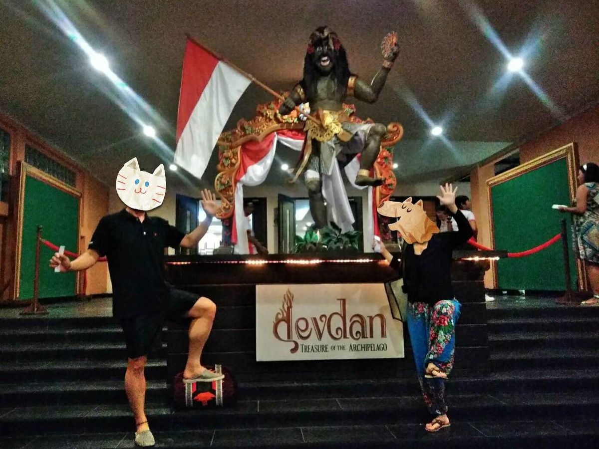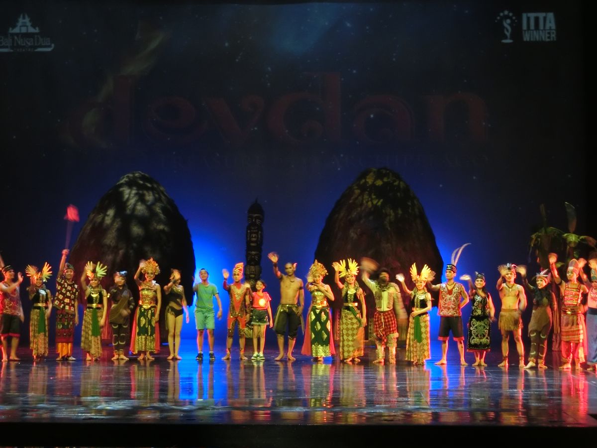 劇場に入ると私達の席は中央のビップ席より少し前列のA席でしたが中央前方のとても見やすい良い席でした。バリ版シルクドソレイユと言う事で、とてっも楽しみにしていました!私はシルクドソレイユが大好きで日本の公園は4回連続で見ています、そのバリ版を見たくて更にモニターで一人分無料で見れるなんて、なんてLuckyなんでしょう♪♪劇場は空席が目立ちましたが、ショーが始まると初めて見る民族舞踊がとても新鮮で衣装も素敵でした。途中キャストが客席に降りて観客をダンスに誘い盛り上がりました。シルクドソレイユを思わせるロープを使ったショーも良かったのですが、このロープのショーがシルクドソレイユと重なりますがデブダンショーーがバリ版シルクドソレイユというのはどうかな?と思いました。もっとバリの伝統舞踊を前面に伝えた方が興味を引くのではないでしょうか?