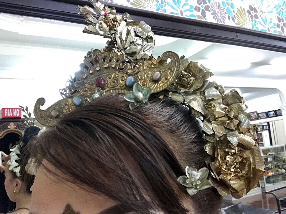 せっかくなのでバリの民族衣装を着てみようと、出発前に予約しました。日本語ができるスタッフさんがいるので安心です。お迎えの方は日本語わかりませんと。最初に言ってくれます。送迎のみの方はバリ語オンリーの方おおいですね。この日は予約していた方が数時間遅れているということで、全体的にバタバタしてました。衣装を決めて、少し待っていると一人ずつ呼ばれます。衣装とヘッド飾りは別のスタイルからも選ぶことができるので好みのスタイルになれます!衣装は全て安全ピンでとめます。体に刺さらないかドキドキしますが、スタッフはなれてて上手です(笑)化粧は、薄めと思っていましたか、友達をみると、バリニーズの感じに仕上げるといってたので、わたしは普通にしますと伝えたのですが、外を歩ける感じではなかったです(笑)濃いのが苦手な方は、こんな感じにって、写真とか見せるといいかもですね。なかなか薄い濃いは、現地の方と合いません。