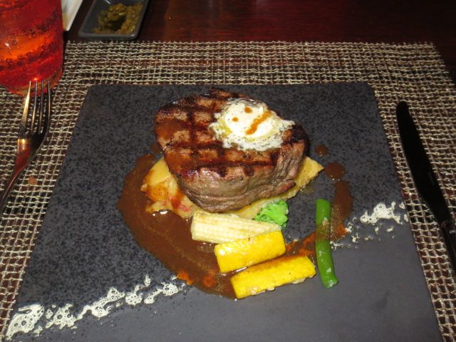快適なホテルレストランで、すばらしい夕日とディナーを頂きました。