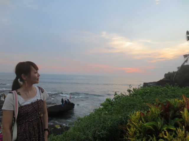 初めてのバリ島。到着してからあちこち観光をして、一番最後に観光できる帰国前日にタナロット寺院の夕日鑑賞をしました。迎えにきてくれたガイドさんは、とっても面白い人で、ドライバーさんも明るく楽しい人でした。渋滞を見越して多めに移動時間をとってくれていたうえ、渋滞せずスムーズにつけたので、夕日を見るまでにもたっぷり時間がありのんびりタナロット寺院とその周辺の観光を楽しむことができました。タナロット寺院の建っている海辺は波が高く、大きな波が繰り返し寄せては壊れ迫力のある場所でした。駐車場から歩いて行くと、まずは崖の上からそんな海の景色が見え、続いて崖の上に寺院が見えてきます。その寺院の先端からは、遮るもののなにもない雄大な景色が見えます。更に進んでいくと、海辺の大きな岩の上にお寺が見えました。岩の下からは海にも関わらず真水が湧いているとか。ガイドさんの丁寧な説明もあり、より楽しい観光になりました。あちこち散策し、いよいよ夕日の時間に。いくつかおすすめの場所を教えてもらい、私たちは崖の上のテラスからビールを飲みながら鑑賞する事にしました。その場所までは少し坂をあがるのですが、狭くて細い道の両脇にお店があったりして、そこを歩くのも楽しかったです。夕日自体は残念ながら、海の中に落ちる辺りに雲がかかってしまい、最高の落日とはいきませんでした。ガイドさんが言うには、そこまで見れるのは月の三分の一ぐらいだそうです。しかし、夕日は散策中にたっぷり見られていたので、充分満足できる観光でした。ガイドさんの日本語は完璧ではありませんでしたが(難しい言葉をあまり使いません。でも彼がどうのというのではなく、どうやらバリ島のガイドさんのレベルが他のアジアの国のガイドさんに比べてそれほど高くはないように感じました。どの観光のガイドさんもそんな感じでしたので)バリ島について様々な情報を教えてくれ、ユーモアたっぷりの方でしたので、また彼の案内で観光をしてみたいなと思いました。バリ島に行かれる方には本当におすすめの観光でした。