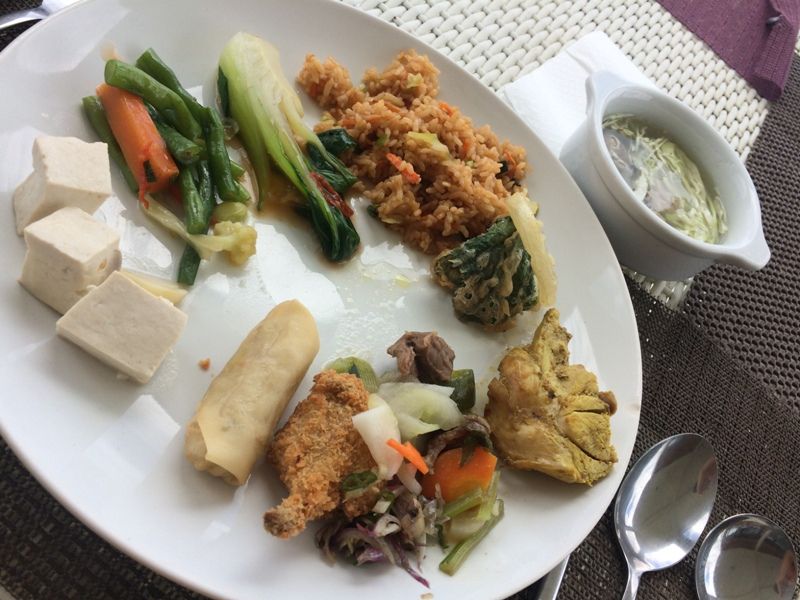 キンタマーニ高原ではビュッフェスタイルの昼食をいただきました。素敵な景色を眺めながらで楽しめました。ただしハエが多く飛んでるのではらいながらになりますが。