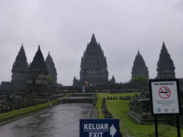 午前のボロブドゥールは晴天、午後のプランバナンは