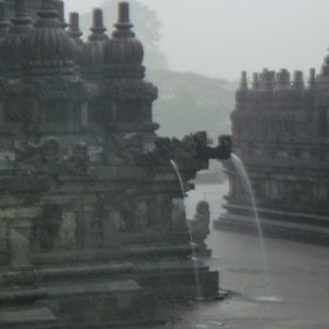 3:30AM起床、4:30のホテル迎えから始まり、朝のライオン航空機も順調にジョグジャカルタ着、案内されたホテルの朝食は旨かったです。炎天下のボロブドゥール遺跡見学でしたが、よく晴れて、建物やレリーフの陰影がよく見えて夢見心地の中、今見ることができる第6基壇まであっという間だったような気がする。でもまだ噴火の爪痕はあちらこちらに残っていました。この午前中までは最高でした。午後からにわかに黒雲が出てきて、ものすごい雨と雷。16:00頃からのプランバナン寺院見学は、その雨と雷の中。ほとんどの時間、寺院の塔の中でLEDライトの明かり一つで雨宿りでした。勿論傘はありました。でもそれよりも雨がすごすぎて。意を決してツアー参加の10名全員が、まだ雨の降る中バスまで足首まで溜まった雨水につかりながら走りました。それでも走る我々観光客に「お土産、安いね。」と言って近づいて来る物売りのおばさんたちの逞しさには感心するばかりでした。皆で夕食を摂ろうということになりガイドさんがテキパキと動いてくれ、行ったレストランの本場ジャワカレーには全員が舌鼓を打ちました。