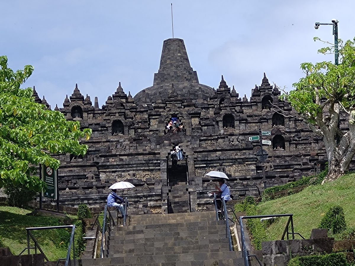 ポロブドール遺跡は、Covid後は標準入場料ではストゥーパの鎮座する位置まで登れません。オプショナルとして、Rp80,000/人を支払いして可能に。今回は、ガイドさんのサポートで無事に拝観出来ました。上からの眺めは一段と違いますよ。ありがたい対応でした!