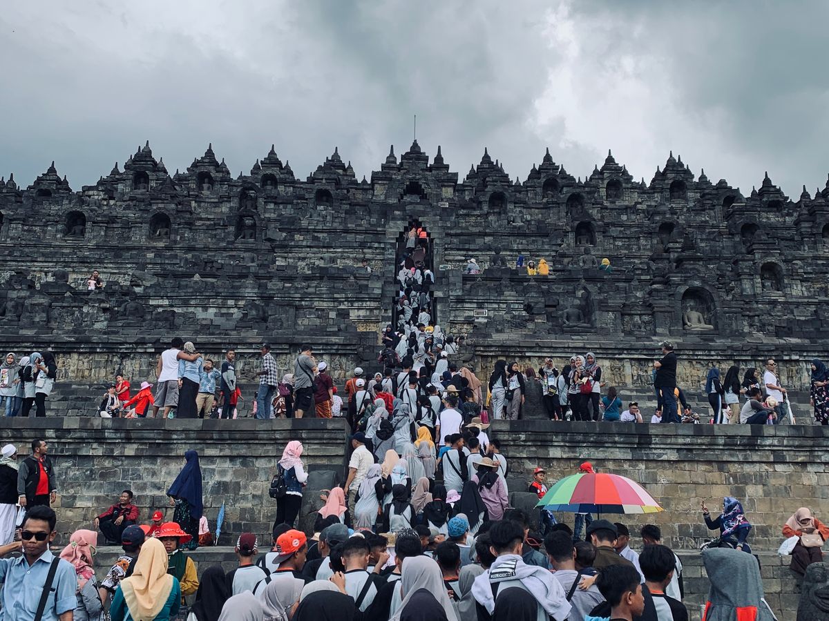 このツアーのページに但し書きとしてボロブドゥールは「広場までしか入れない」と書いてありますが、現在は予約をとれば政府関連組織(?)主催のツアーで登ることができます。