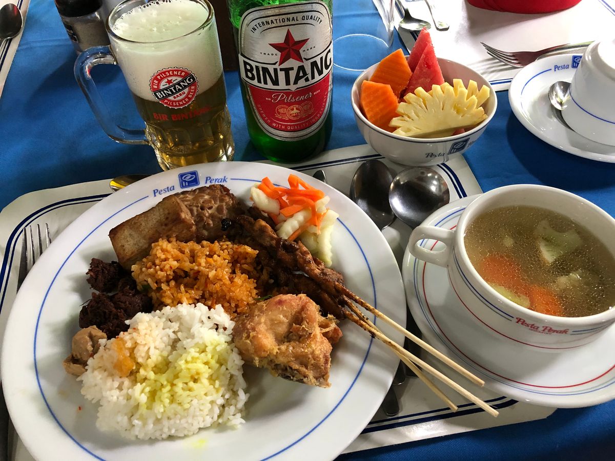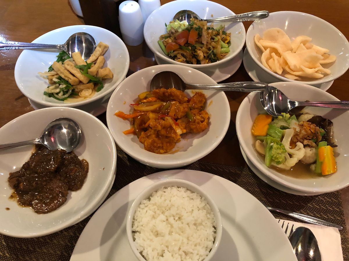 スタンダードプランのランチですが、豪華さはない普通のバイキング形式でしたが、ジャワカレー、ナシゴレン、サテなど現地の料理は難なく楽しめます。レストランの衛生面も悪くはなかったです。