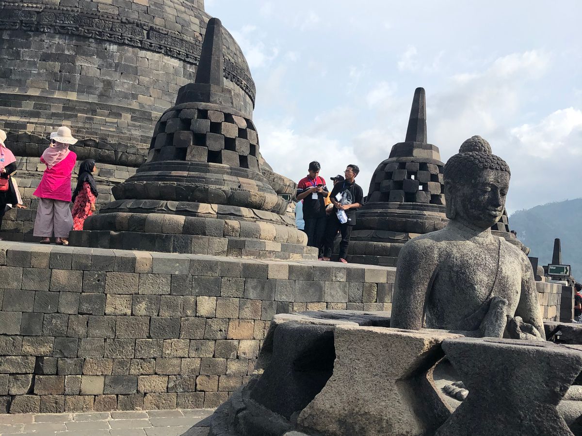 ボロブドゥールと言う意味はBOLO 寺院 、BUDUR 丘の上 と聞き勉強になりした。壁画についても時計回りでストーリーになってることを聞き、丁寧に説明してくれました。これはガイドなしで行っても楽しさ半減だったと思います。