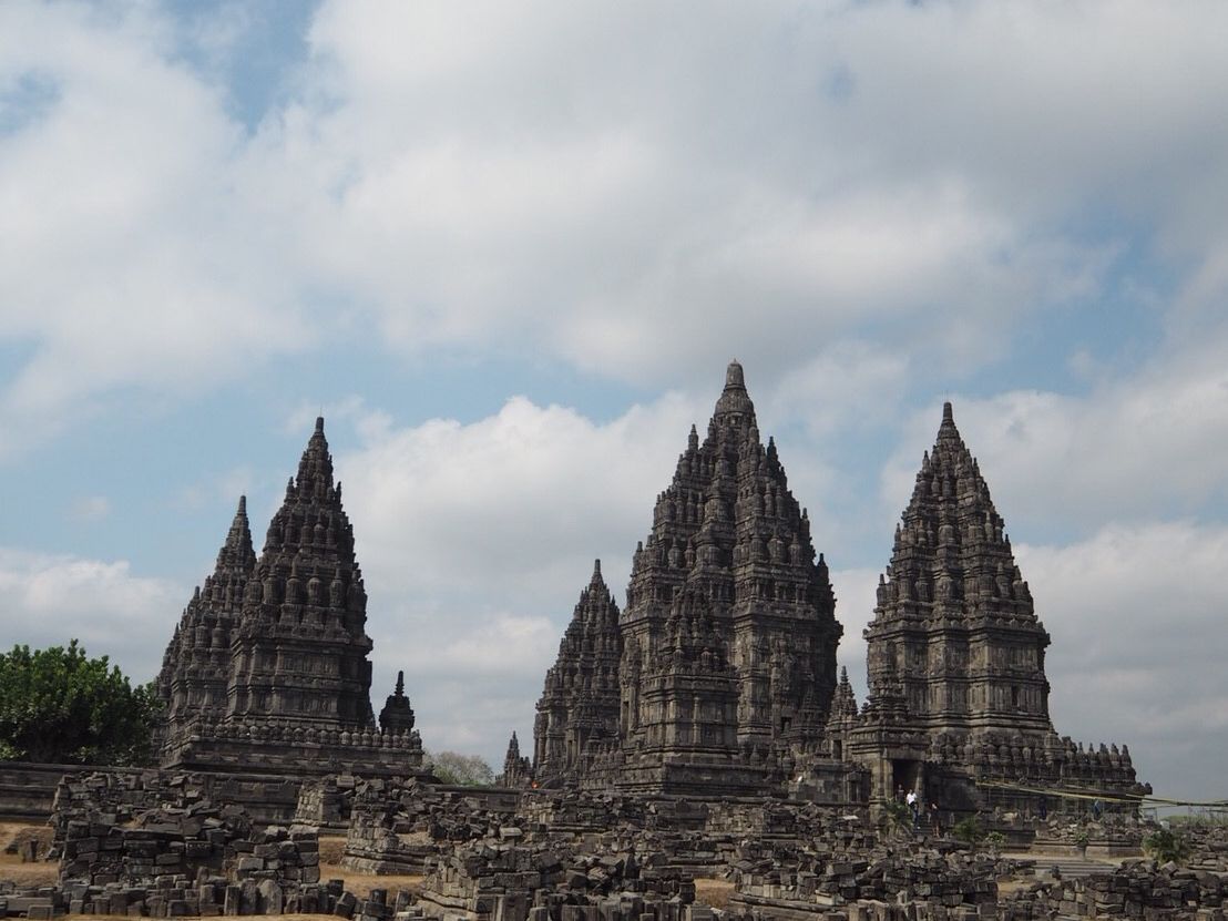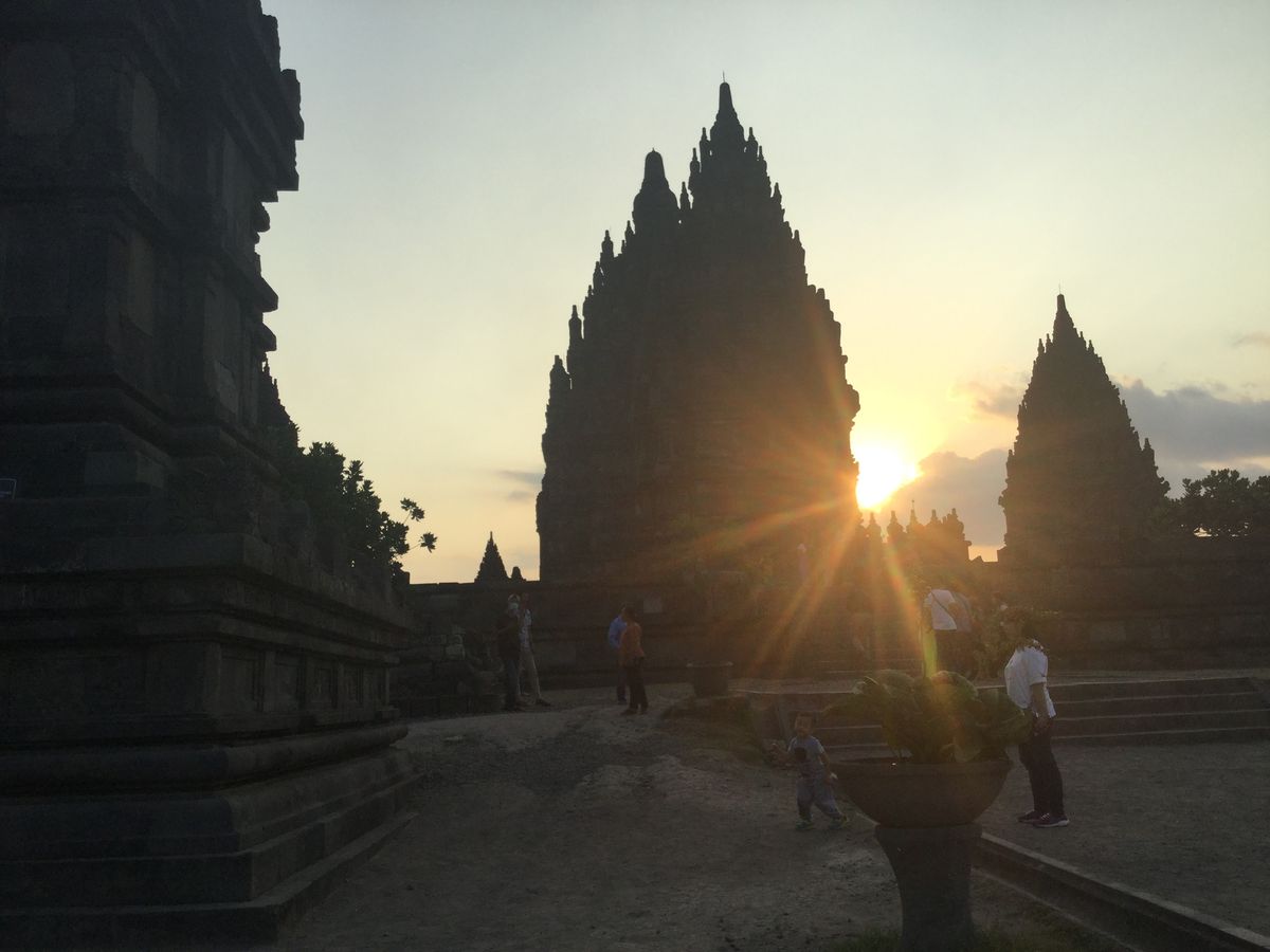 プランバナン遺跡では夕方の 夕日をバックにした綺麗な景色を堪能しました。