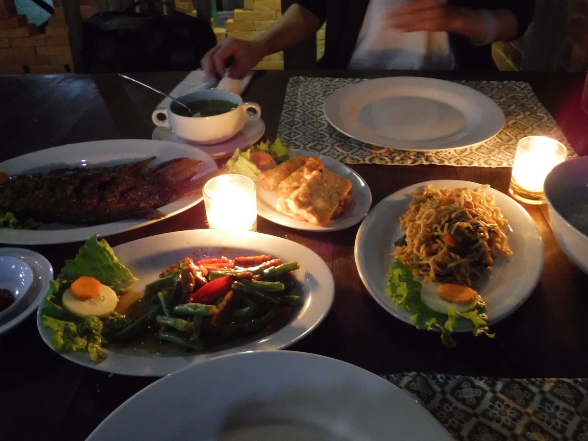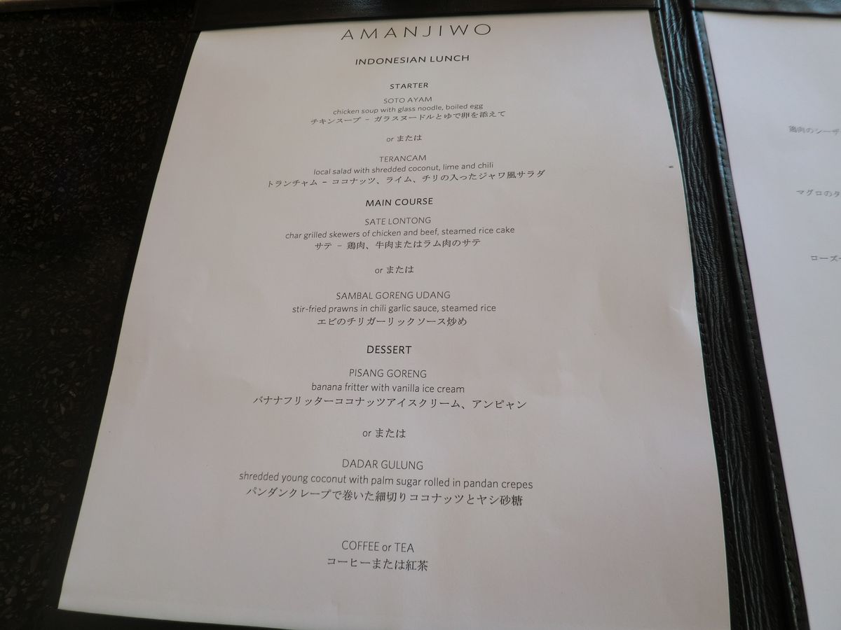 食事に関しては満足です。とびきりおいしいかと言われると好みが分かれると思いますが、普段は行けないような高級ホテルのレストランで、喧騒を離れ(実際数組が食事をしているのみで、とても静かでした)、ボロブドゥールを眺めながらの食事は最高のひとときでした。ただ、調子乗ってランチを完食してしまったため、お腹がすかず夕食をほとんど残してしまい申し訳なかったです…予約の都合等から難しいのかも知れませんが、コースではなく個別に注文か、バイキングだとひとり身にとっては嬉しいです(その場で渡されたアンケートにも、その旨記載させていただきました)。