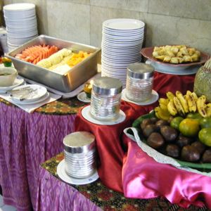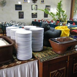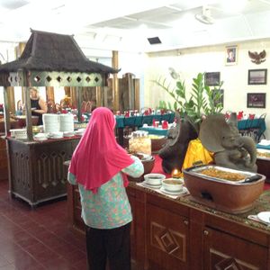 お昼のレストランはジョグジャカルタ駅の近くのレストランでバイキングです。時間的に混んでると思いきや貸切状態で、メニューもそこそこ豊富でした。何より清潔だったので良かったです。食事をしている間に他のツアー客も入ってきているようでした。