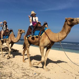 家族でバリ島に行きました!象さんとらくださん迷いましたが娘の「らくだに乗りたい!」の一言で決めました。30分間海を眺めながら〜らくだんさんの背中に乗って4人とも子供のように大はしゃぎでした!(笑)スタッフの方達からたくさん写真を撮っていただき、とても良い記念になりました!私たちは30分コースにしましたが、ちょうど良かったです。コインロッカーなどはないですので持ち物は最小限にされた方が良いと思います。とっても楽しかったので「おすすめ」です!!