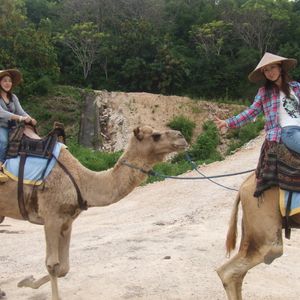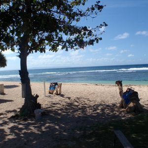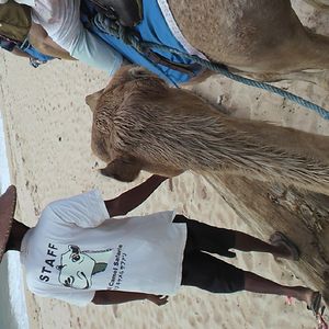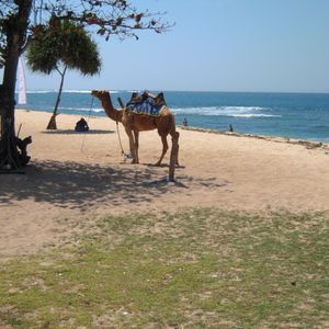 ラクダに乗って散歩…とても楽しかったです。初対面のときはすごい鳴き声で歓迎?してくれ、すでに大笑い。ラクダのデフォルメした顔がスンゴク面白くてまた大笑い。ガイドさんはそれぞれのカメラで、いいショットでたくさん撮ってくれました。ただ、あまりきれいじゃないコースにも入るのでちょっと??。でも天気も良かったし、青い海と白い砂浜とのコントラストがきれいで、気持ちよかったです。