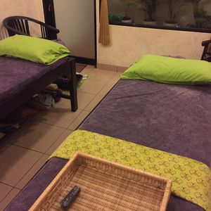 お迎えの時間もきちんと来て頂いて、5分前に着きましたが、既にまっていてくれました。着いたら直ぐにお迎えが来てくれて、雨が降っていたのでドアまで傘をさしてきてくれました、受付の方は日本語がお上手でしたので、言葉に困ることはございませんでした。入ってすぐにお花が浮かんだオブジェがあり癒されます。今の身体の状態のアンケート(日本語)をした後にオイルの香り選びからです。ルヴィアタッチをしました、始め足のマッサージからですが、少々強めのマッサージでした、その後全身くまなくして頂きました。2人で参加しましたが、主人の方の方は何度か強さに問題ないかの質問をしてくれていました、私のほうは一度もなかったのでそこだけが残念です、少々痛みはありましたが効くだろうと少し我慢気味で耐えました。主人の方の感想はすごく丁寧さが伝わってくる施術でしたと大変満足しておりました。施術後はシャワーをし温かい飲み物とクッキーを出して頂き。とても清潔にしておられ、マッサージルームの空調も丁度いい感じでとても満足しました、料金的にも丁度いい感じです、また機会があれば行きたいです。