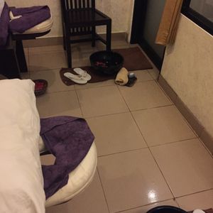まずはフットマッサージ!お花の入った桶で優しく足の指からふくらはぎまでを洗ってくれて爪の汚れやかかとの角質もとってくれました。
