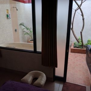 ウェルカムドリンクのジンジャーティーをいただくき、準備のために少し受付で待たされましたが、スパ施術スタッフは明るく、程よい指圧にマッサージを堪能。ただ、スパ途中に声かけがなく、いきなり冷たいボディースクラブが始まったり、このままの状態で何分おくのか…もわからず、目を覆られているので、びっくりする事が多かったです。1hのオイルマッサージから始まり、ボディースクラブ、続いて、アボカドパック、最後はフラワーバス。あっという間に3hが終了しました。