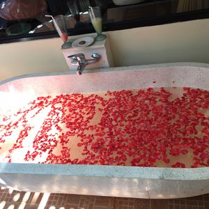フラワーバスに入りながら、フルーツジュースをいただき、そのあとシャワーを浴びます。