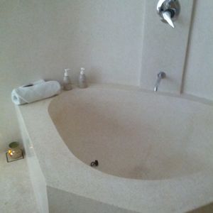 ボディスパ(2時間)を受けてきました。バリ島のスパは比較的多く行っている方ですが、なぜ今までなかったんだろう?バスタブが半透明の仕切りを挟んで2つに分かれていました!