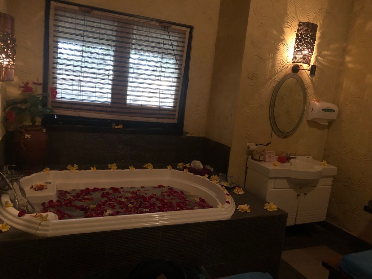 全身オイルマッサージから始まり、ホットストーン、シロダーラ、フェイシャル、全身パック、花びら風呂、ヘッドスパ、最後はシャンプーして美容室さながらにドライからスタイリングまでしてくださりました。しかも上手!!