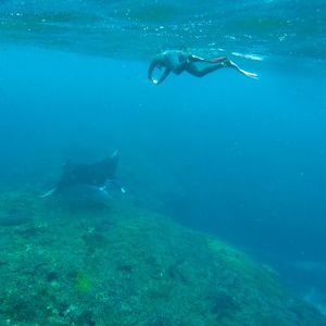 昨日参加された方はマンタを見ることが出来なかったとスタッフの方が話していたのですが、マンタポイントでは着いてから直ぐにマンタが2匹ほど泳いで居たのが見られました。シュノーケリング中ずっと私たちの下で泳いでいました。