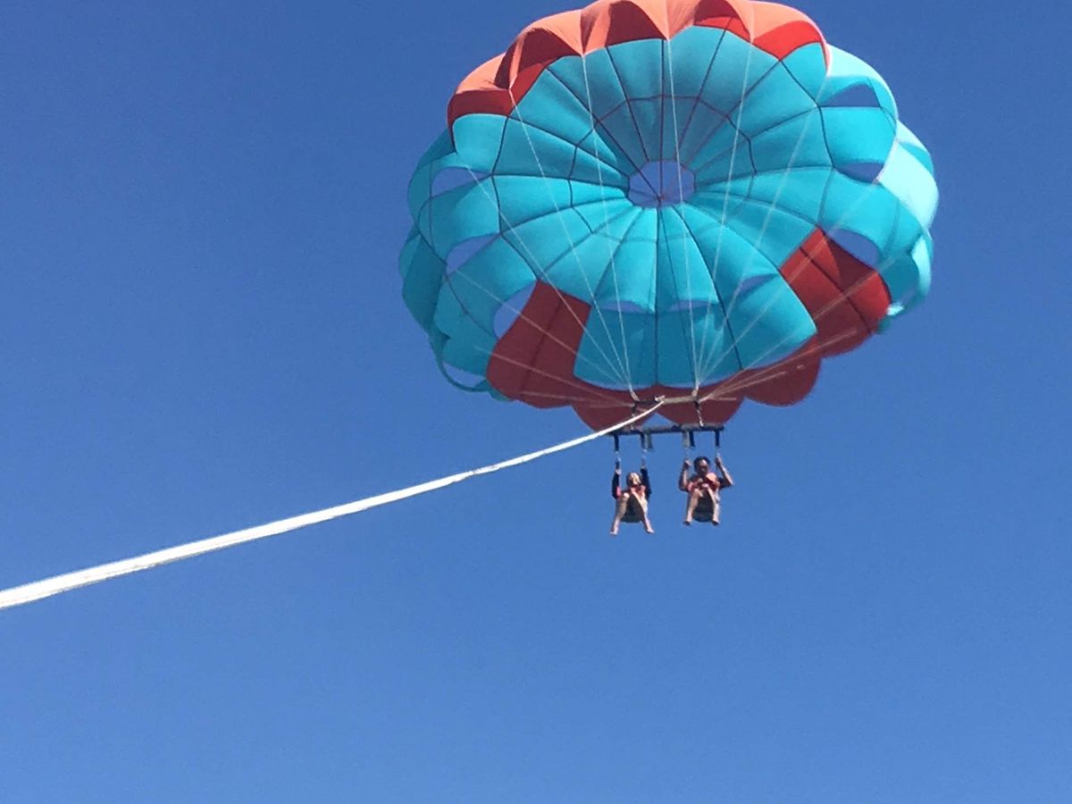 オプションで申し込んだパラセーリングが最高でした!高く上がるけど安定感があり、ゆったりと景色を楽しむことが出来ました。ボートで沖に出るので、イルカにも出会えます。