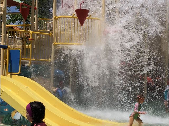 キッズエリアで遊んだ後、子供とスライダーを満喫し、流れるプールでのんびり。