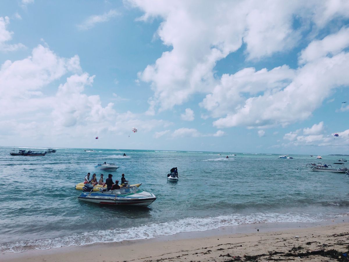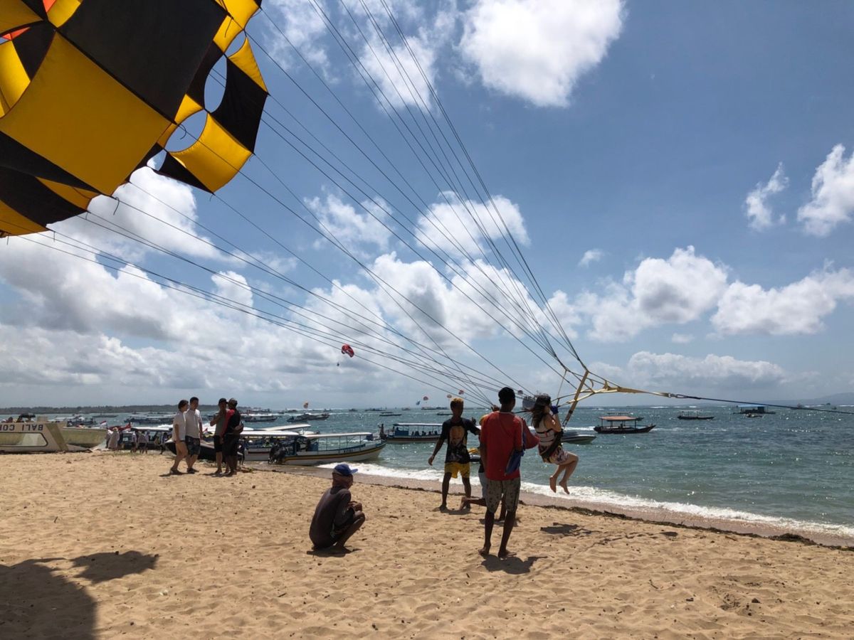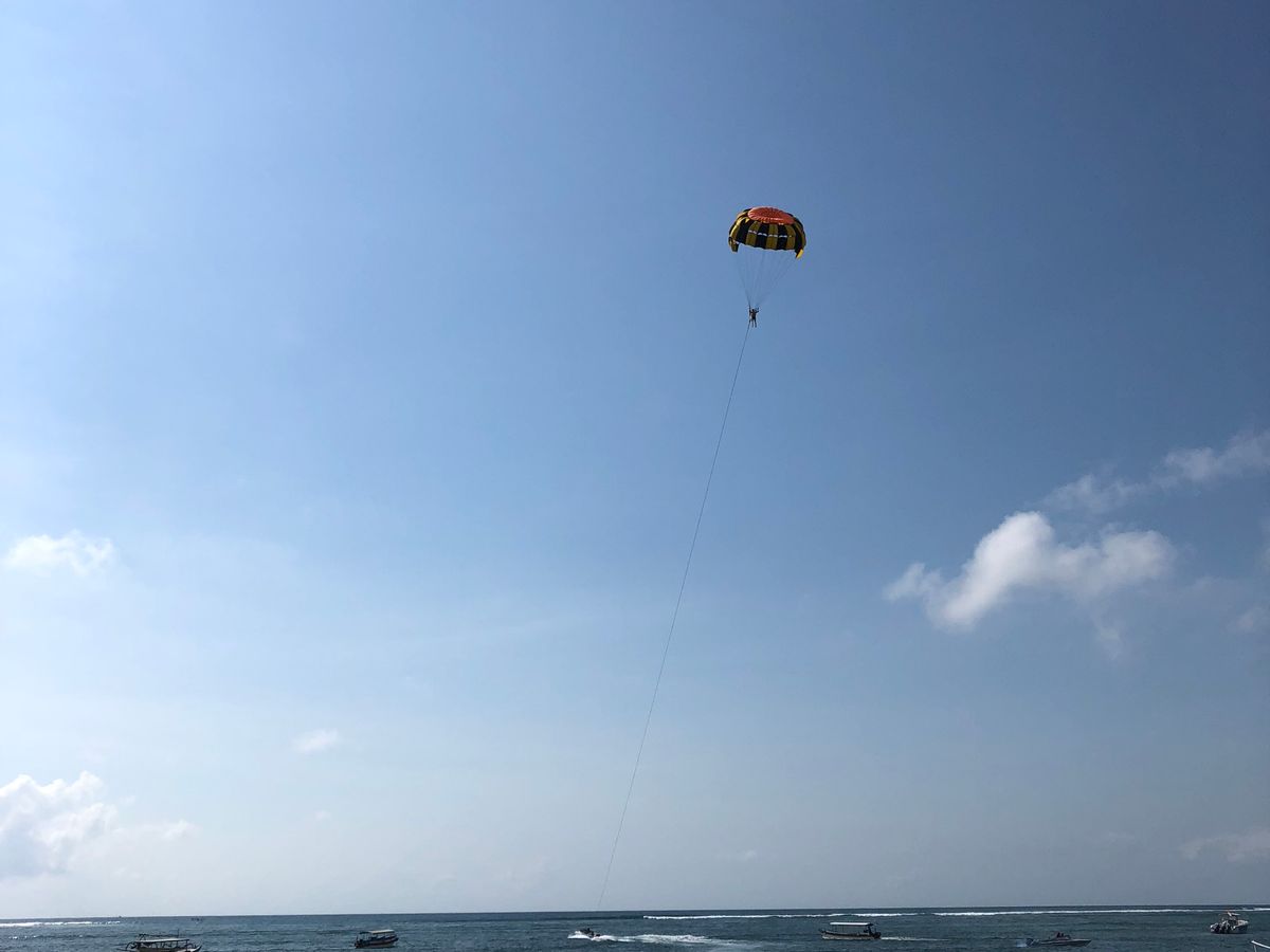 そしてアクティビティ本番、まずはパラセーリング。初めての体験だったので最初は怖かったですがすぐに慣れ、バリ島の綺麗な景色を眺めながら優雅な空中散歩を楽しむことが出来ました。次にドーナツチューブとバナナボート。どちらもスピード感があり楽しかったです。そして最後にフライフィッシュ。これはスピードが上がると空中に浮き上がるというもので、最初のパラセーリングより高度は低いものの、高速で空を飛ぶのはスリル満点でした。