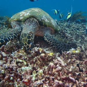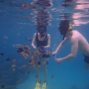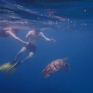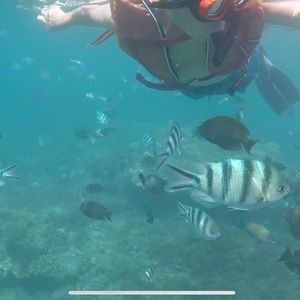 ポイントを変えて、ボートで少し移動し、珊瑚の多いエリアに到着しました。休憩中には、暖かいコーヒー、紅茶、緑茶を用意してくださっていて、個人的には緑茶が嬉しかったです。その後、シュノールを再開しました。珊瑚の色がとても綺麗で、魚も沢山いて感動しました。最後にはウミ亀にも遭遇する事ができ、一緒に海を泳ぐ素敵な経験となりました。途中で魚に餌付けをしたり、ガイドさんが終始水中写真を撮ってくださったのも、最高の思い出を持ち帰ることができました!