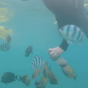 写真にはありませんが、エンゼルフィッシュや名前の知らない虹色のさかなや青いさかななど、まさにおさかな天国でした。2回目のシュノーケリングでは亀も見えました。