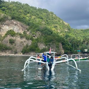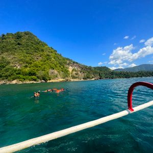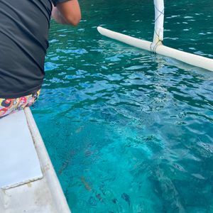 私たちは海にいるカメやたくさんの美しい魚を見るために別の島に行きました。ホテルからその場所まで約1時間半連れて行かれました。そこで私たちはインストラクターに会いました、彼はとても親切で気配りがありました!彼らが私たちを島に連れて行ってくれたとき️ 彼らは私たちをとても興味深いボートに乗せて、海洋哺乳類を見に行きました。海はとても暖かかったので、水着で泳ぎました。海はとても美しいエメラルド色でした!トムトム、私たちは海に飛び込み、美しい魚を見ました。さまざまな種類の魚がたくさんいます。最初の場所は深くなく、2番目の場所は深く、カメなどを見ただけでした。面白い魚でした。娘も私もとても気に入りました。その後、海岸に戻り、とてもおいしいインドネシア料理を食べさせてもらいました