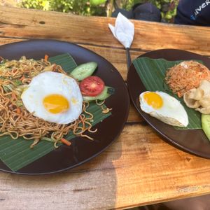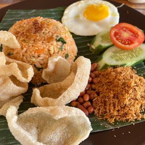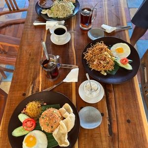 ガイドさんからタオルを借りました。ランチは事前決めていた、ナシゴレンとホットティーを頂きました。美味しかったです。食べ終わり、車でダイビングショップに戻りました。