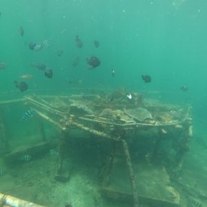 <ダイビングショップ> 30分ほど車を走らせ、到着しました。古民家風の建物のお庭に案内され、日本人のオーナーさんが案内をしてくれました。可愛いワンちゃんネコちゃん達もいました。誓約書を書き、ツアーの説明頂きました。お手洗いはとても綺麗で、髪用のトリートメント・顔パックの準備もあり、女性の私にとってはとても助かりました!鍵付きロッカーもありましたので、そこに貴重品等を預けました。