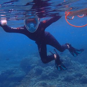 <シュノーケルタイム> ポイントに到着し、気温がそこまで低くなかったので、ラッシュガードは着ずに水着のみで潜りました。その後とても冷えてしまったので、ラッシュガードを着ることをお勧めしめす。