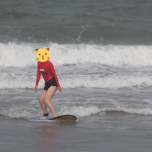 サーフィンは日本語で丁寧に教えてくれました。たくさん褒めてくれたので、嬉しくてどんどん上手になれました。最後は1人で波乗りできて最高でした。波もしっかりあって楽しかったです。