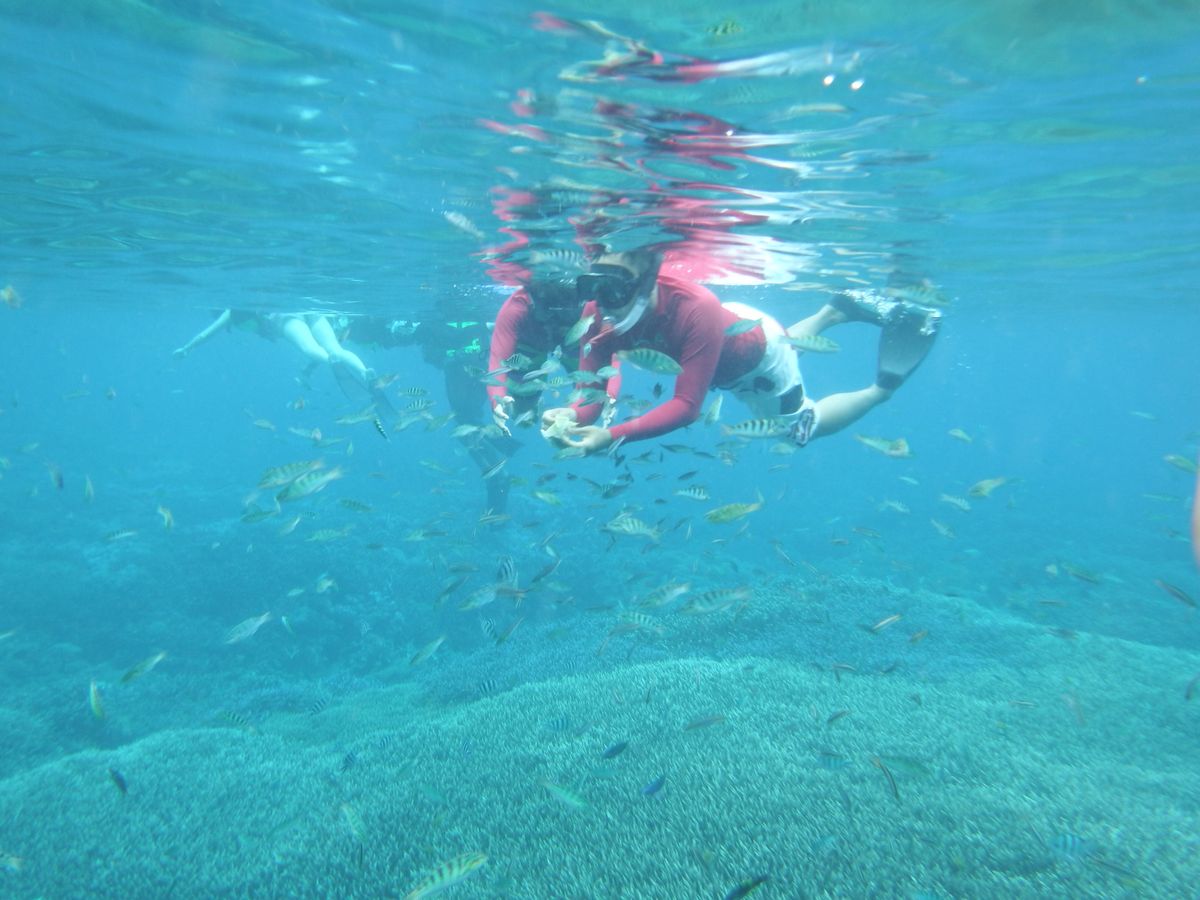 …シュノーケリングは思ったより深いところで行います。海はすごく綺麗!