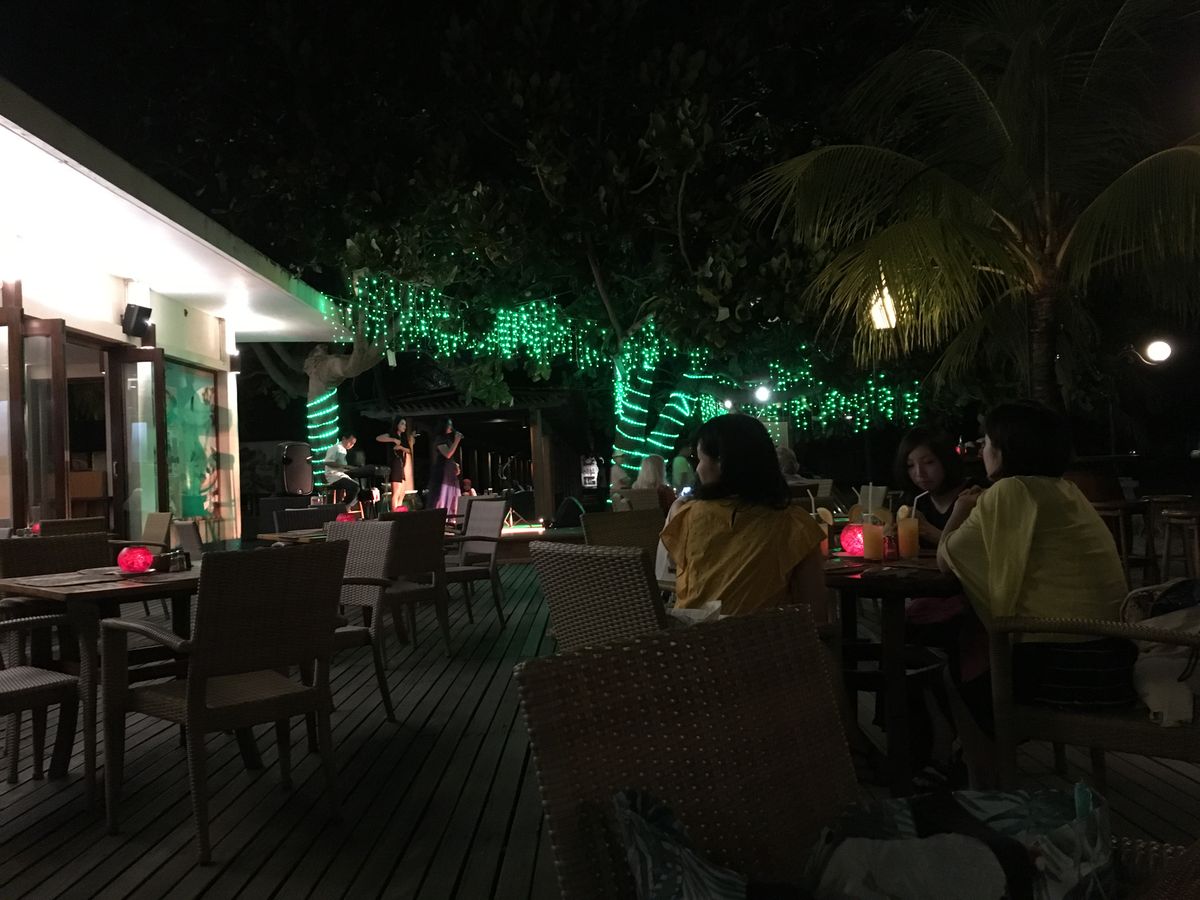 スパ後のディナーも、同じホテルのレストランでの食事でした。海辺のレストランで、シンガーが歌を歌っていて、これまた想像以上の雰囲気でした。