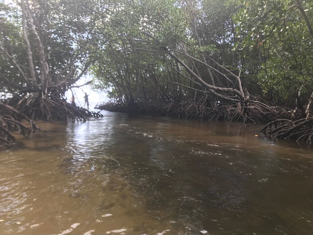マングローブへは干潮で船で行けず、内陸から小さな船に乗り換えて見に行けました。