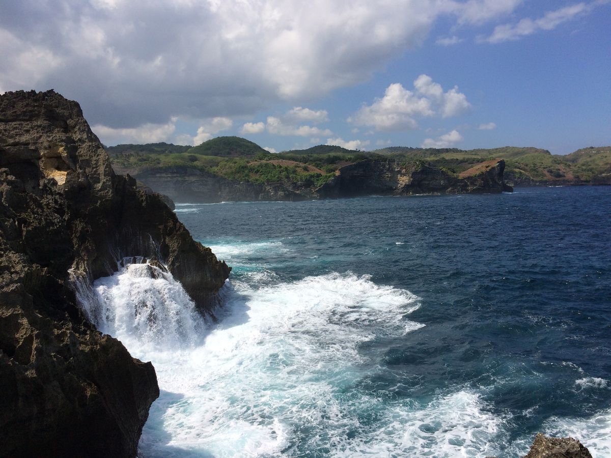ホテル→港(サヌールの辺り)→レンボンガン島沖で小型船に乗り換え→ペニダ島桟橋→(島内は車ででこぼこ道を走行)ANGEL'S BILLABONG→BROKEN BEACH→(名称分かりません)150mの絶壁のビーチ→ペニダ島桟橋前のボートでスノーケルとシーカヌー→帰路