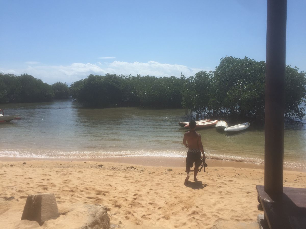 着いてトラックで10分、海の家に到着。30分後に2班に分かれて私たちはマングローブ林をSUPで散策しました。超楽しかったです。