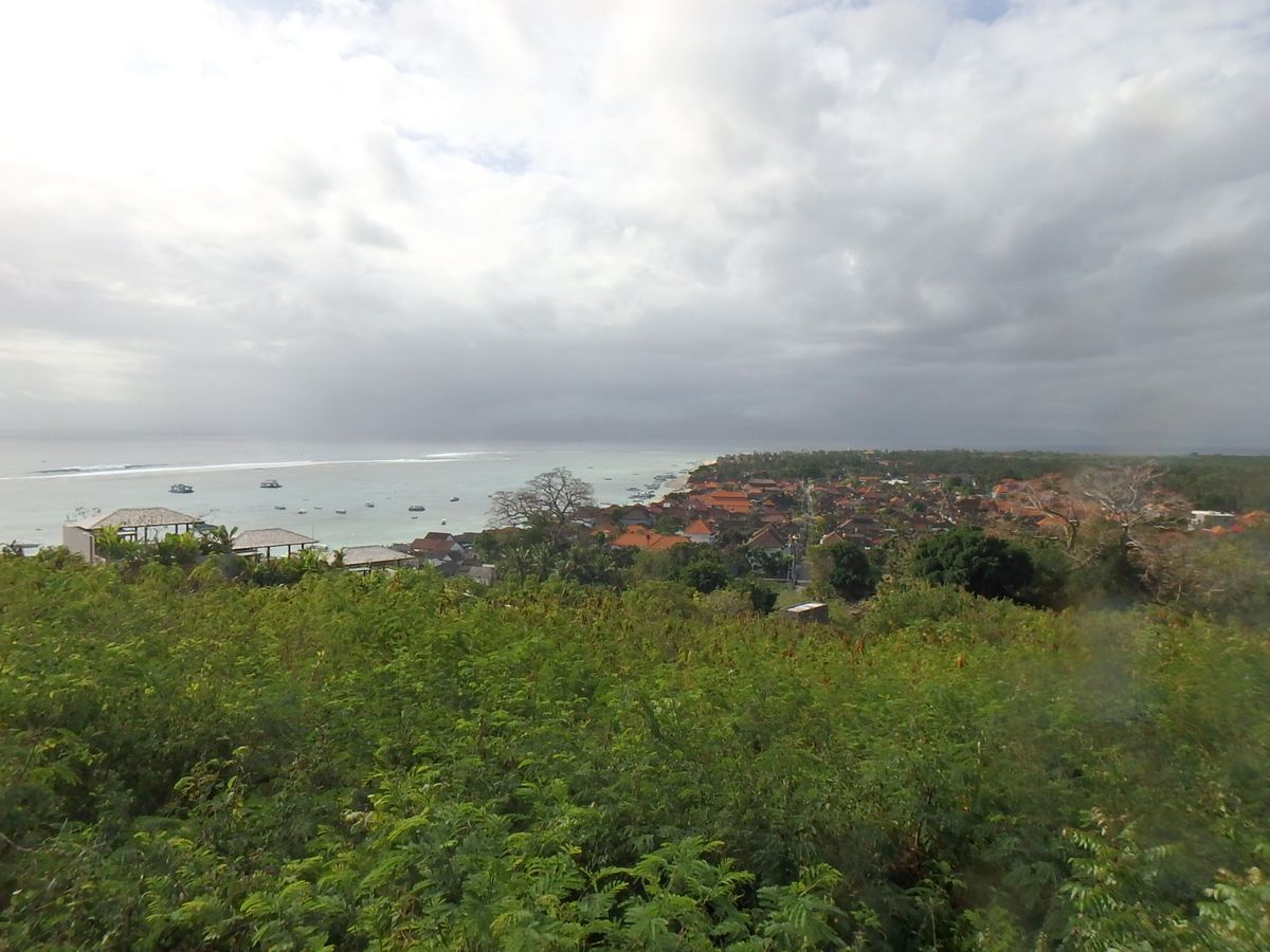 いくつかホテルを専用車がまわって乗合せでサヌール港に向かい、そこからクルーズ船でレンボンガン島に向かいます。船はかなり揺れるので酔い止め必須です。3階は屋外で風が気持ちいいですが掴まっていないと立っていられないくらいでした。