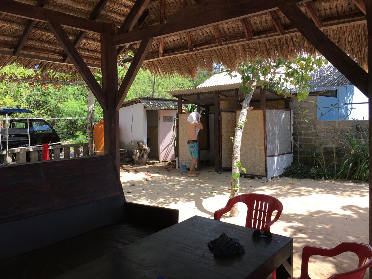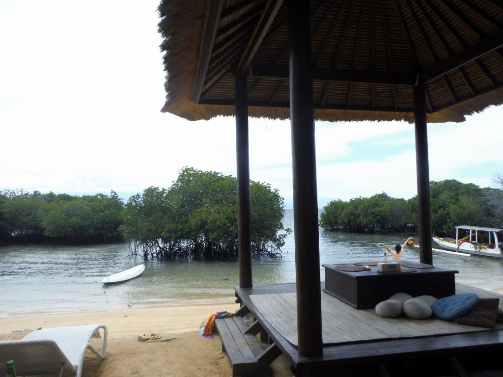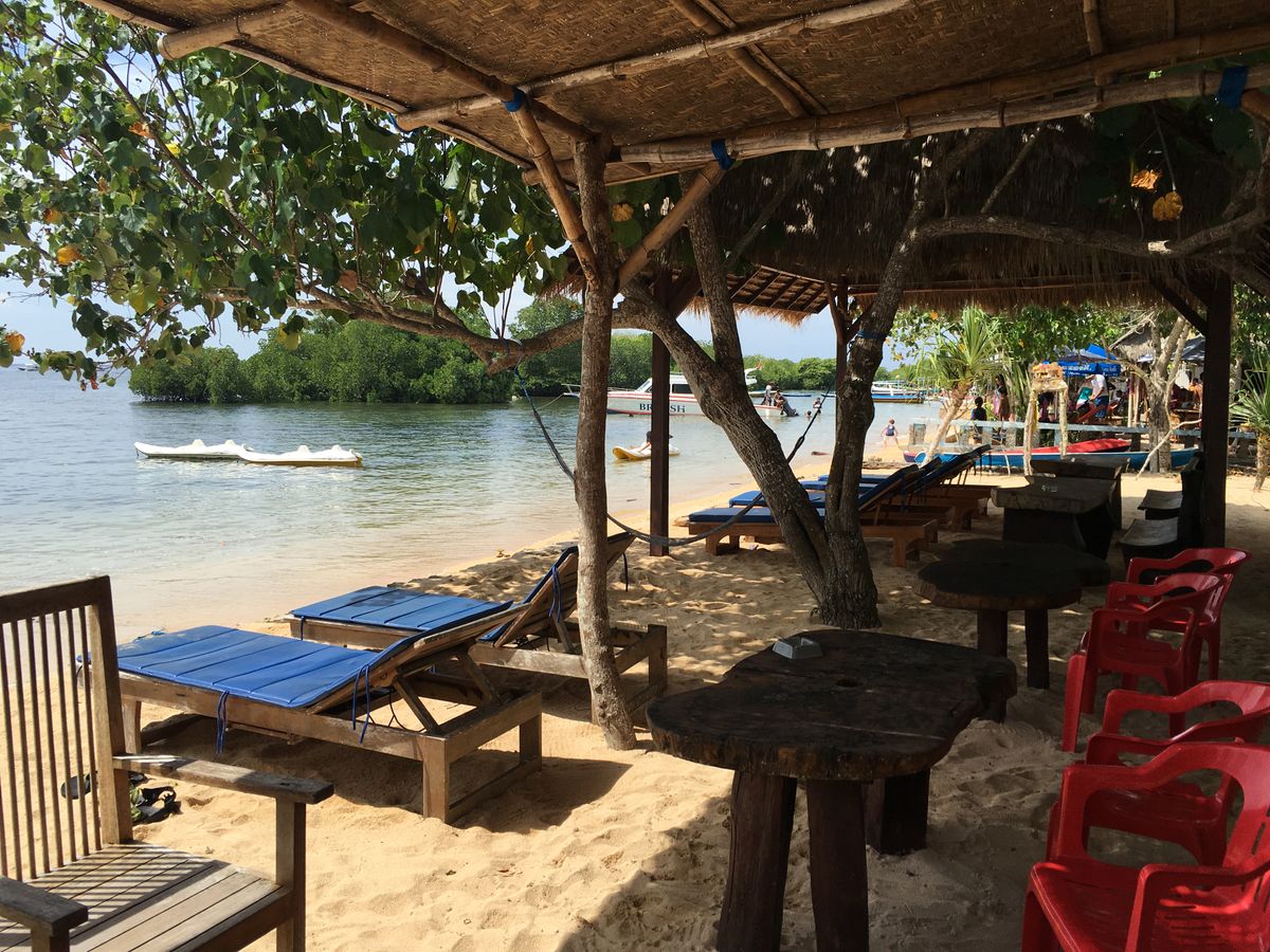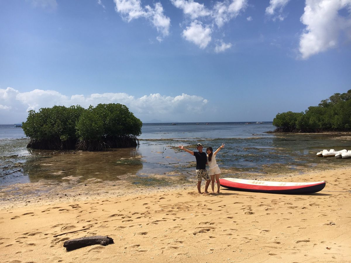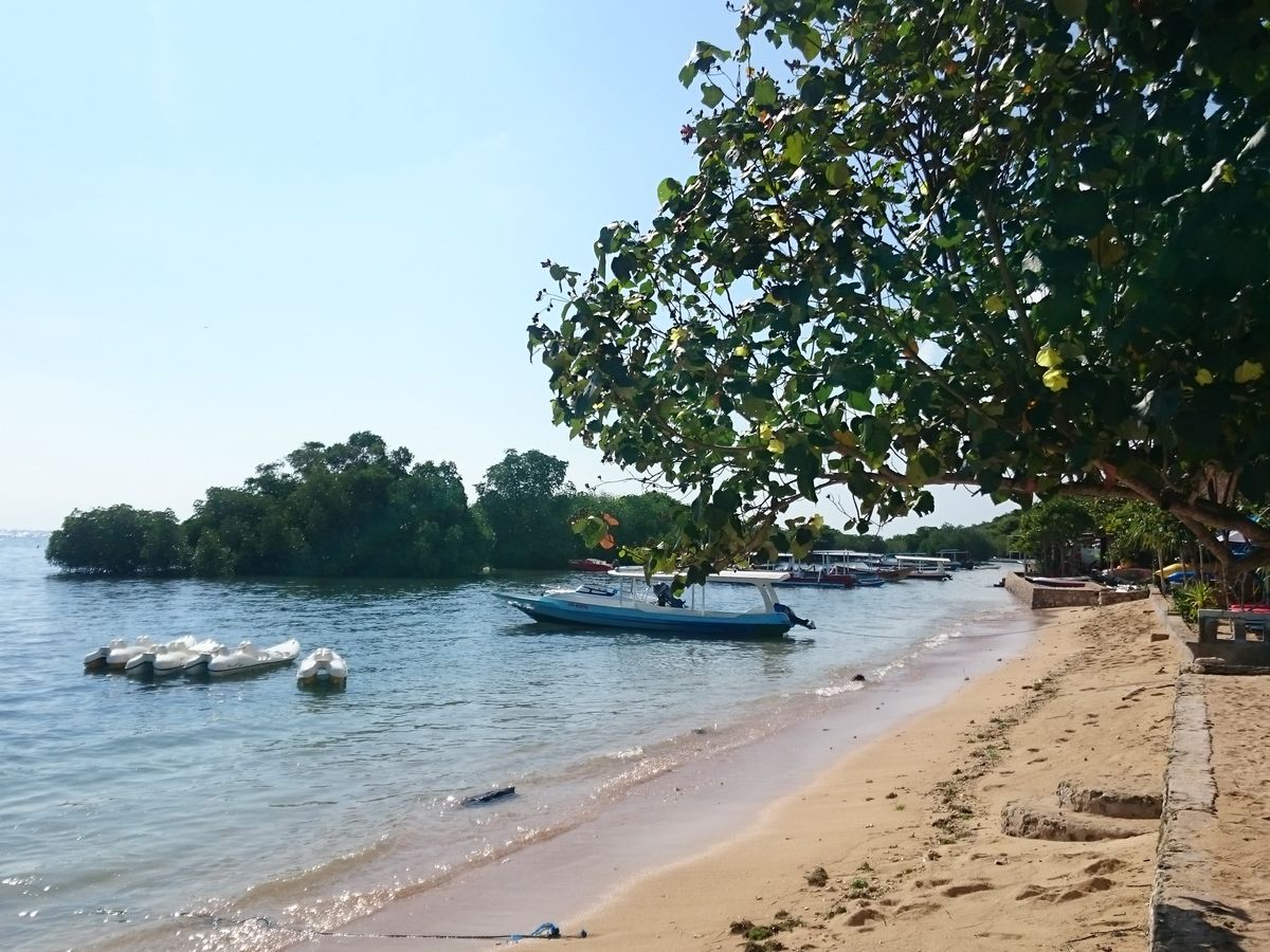 海の家でのんびりする感じです。レンボンガン島のビーチの端にあり、端の方はマングローブがしげっているので海の家の裏からマングローブ探検も出発です。なので海の家の前のビーチもマングローブが。天草工場はすぐ隣のあたりです。シュノーケルの時間が短いのが残念でしたがガイドのお兄さんも一緒に泳いでくれて安心でした。