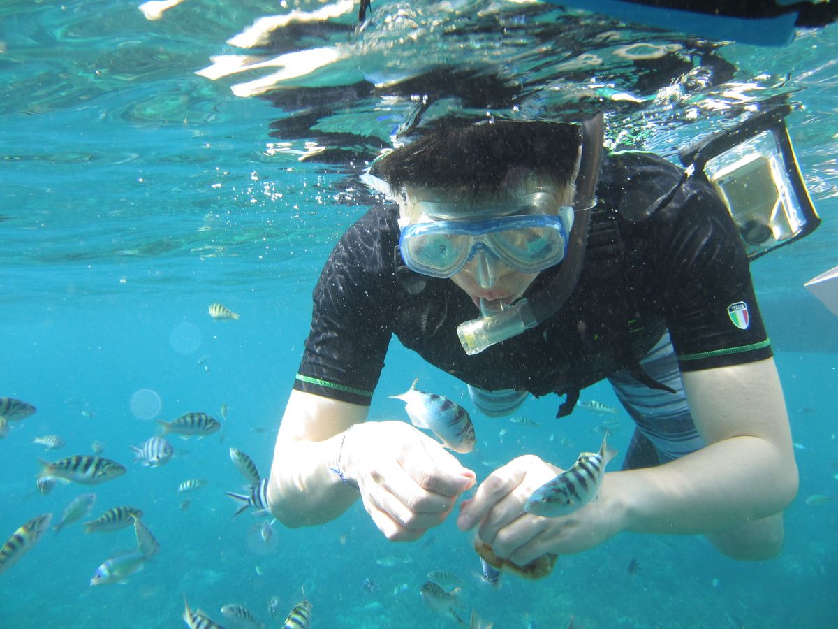 島に向かうスピードボートはとてもスリリングでした。気持ち悪くなる人が続出。海はとても綺麗でシュノーケリングでは魚が沢山みれて満足でした。