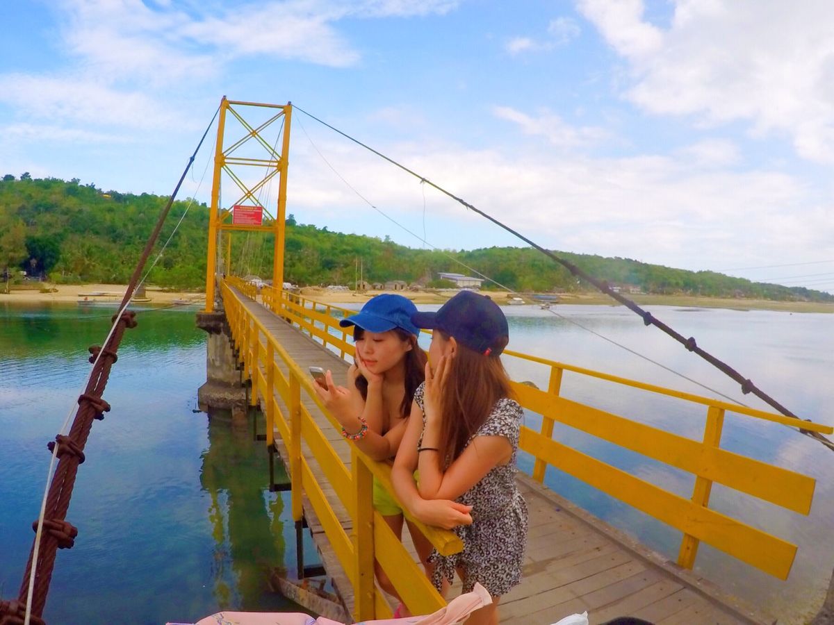 また、トラックの荷台にのってまずは島の山頂上まで行きます!青い海が広がってました(o^^o)写真を撮って、次は島と島を唯一つなぐ橋へ!
