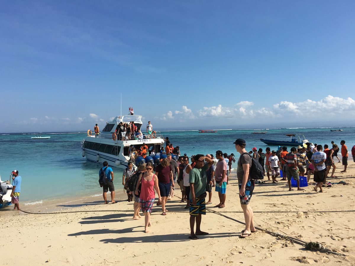 前回はレンボンガン島まではスピードボートで行きましたが、今回は大型船で快適でした。ただ、結構揺れるので吐いてる外国人も数人したので、酔い止めを飲んでおいた方が良いです。