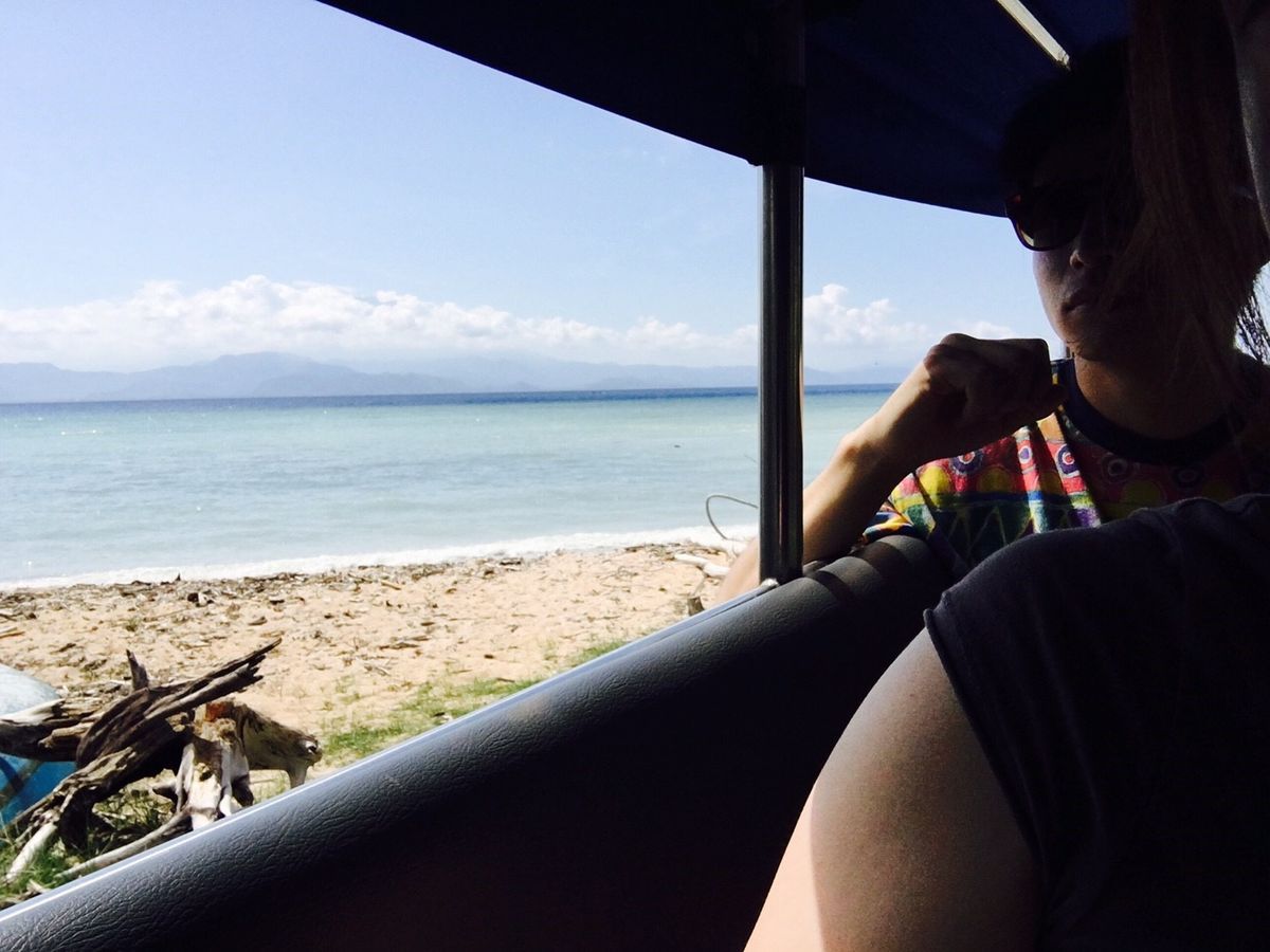 レンボンガン島へ着きまずは海の家cafeへ移動♪道中は軽トラックを改造したトゥクトゥクの様な乗り物で移動!風が気持ちよくて船酔いなんて吹っ飛びました*\(^o^)/*